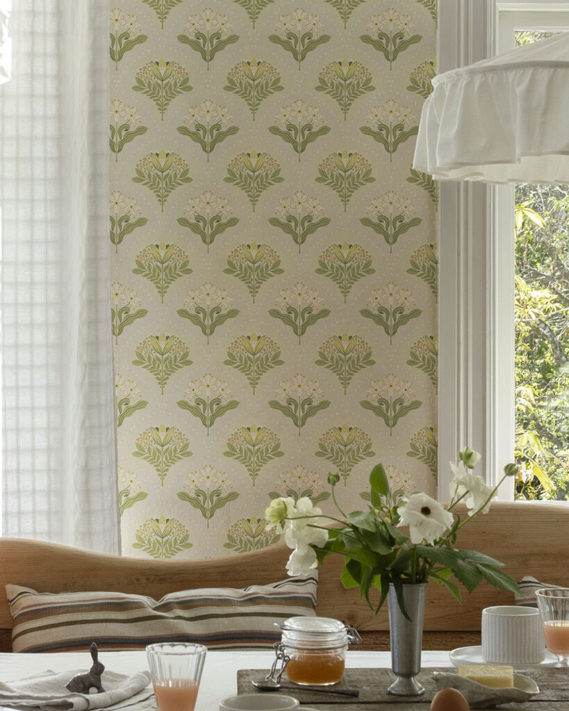 Gammaldags tapeter från perioden 1700-1930, varsamt återskapade från tryckvalsar och tapetfragment. En djupdykning i svensk tapethistoria.
